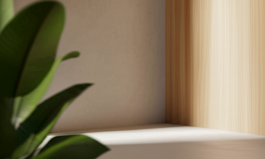 A bright and minimalist indoor space with sunlight casting shadows from a nearby plant onto a textur (3).jpeg