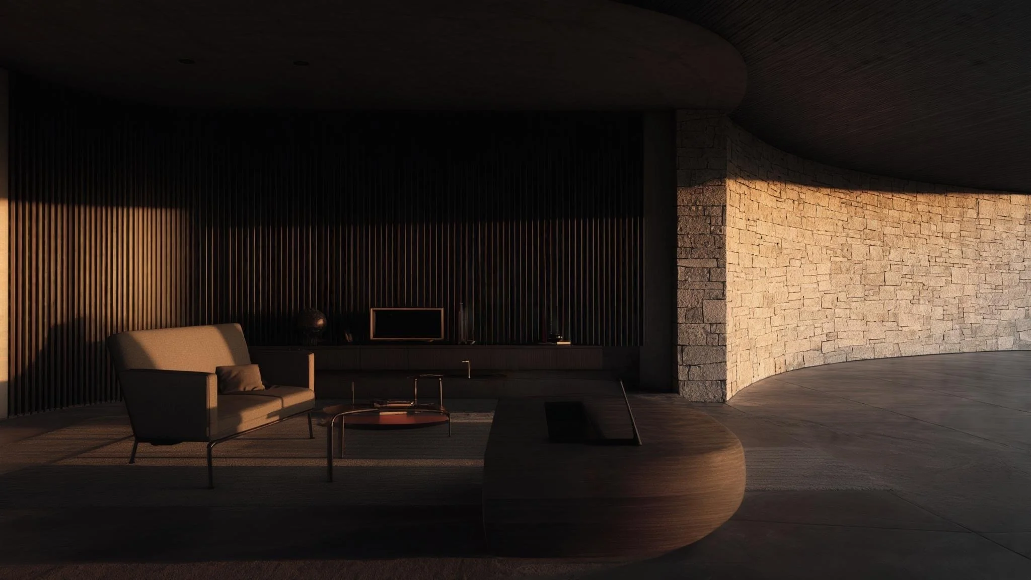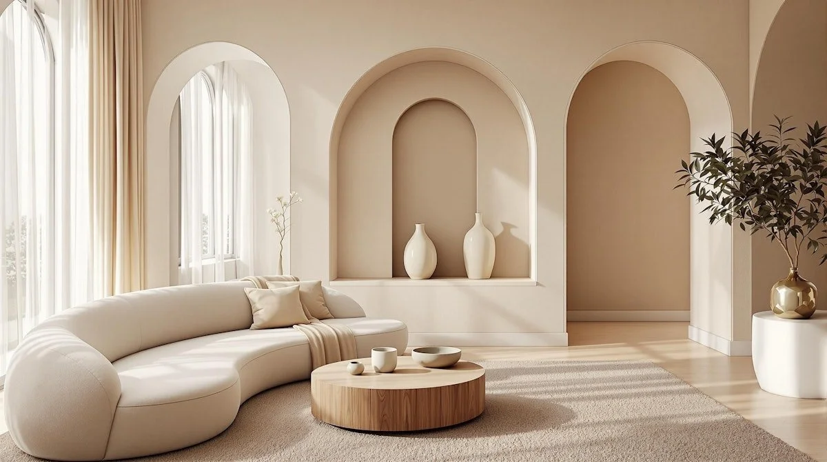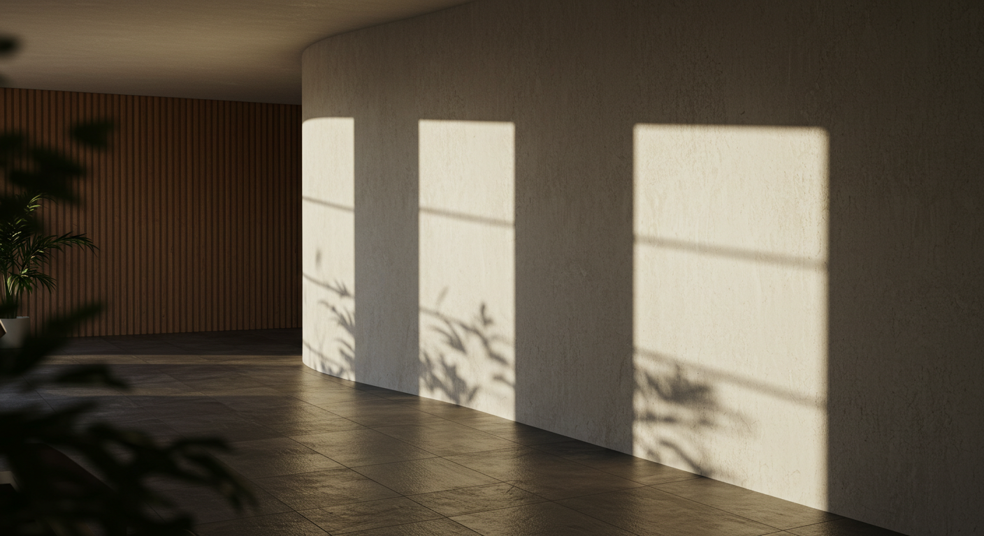 Photorealistic, modern minimalist wall with gentle curves and a clean, soft texture. The view is str.jpeg