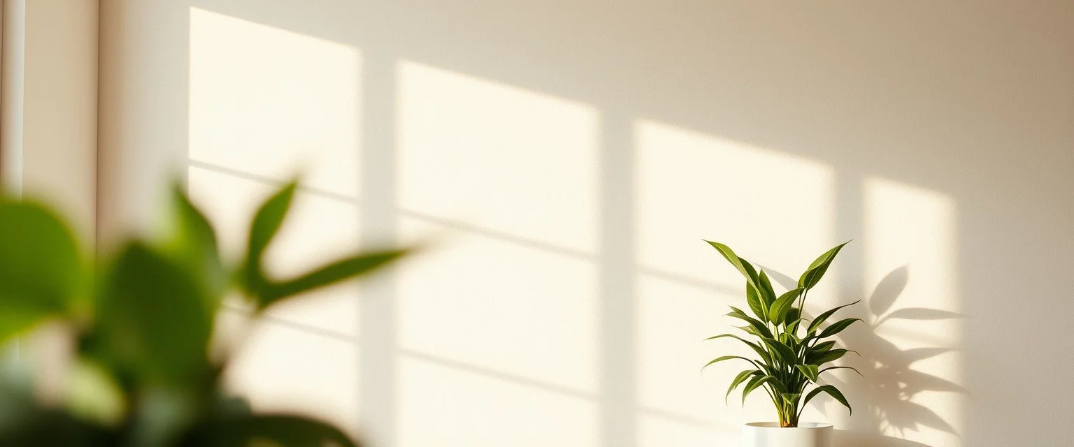 A bright and minimalist indoor space with sunlight casting shadows from a nearby plant onto a textur (1).jpeg